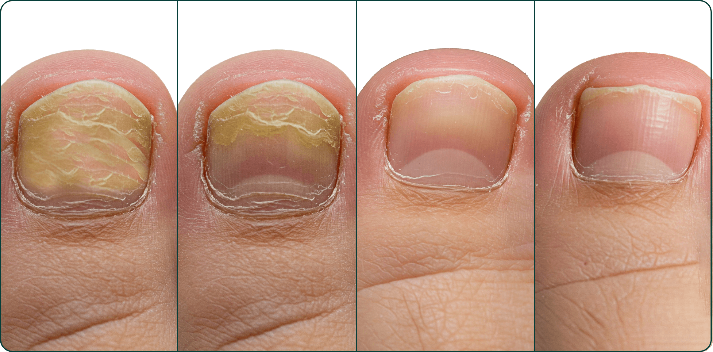 To ensure complete elimination, it’s important to continue treatment until the infected part of the nail has grown out and a healthy nail has replaced it.