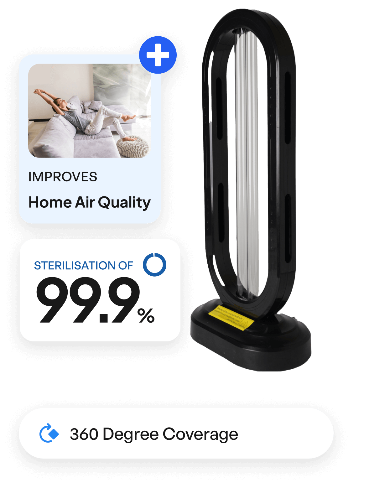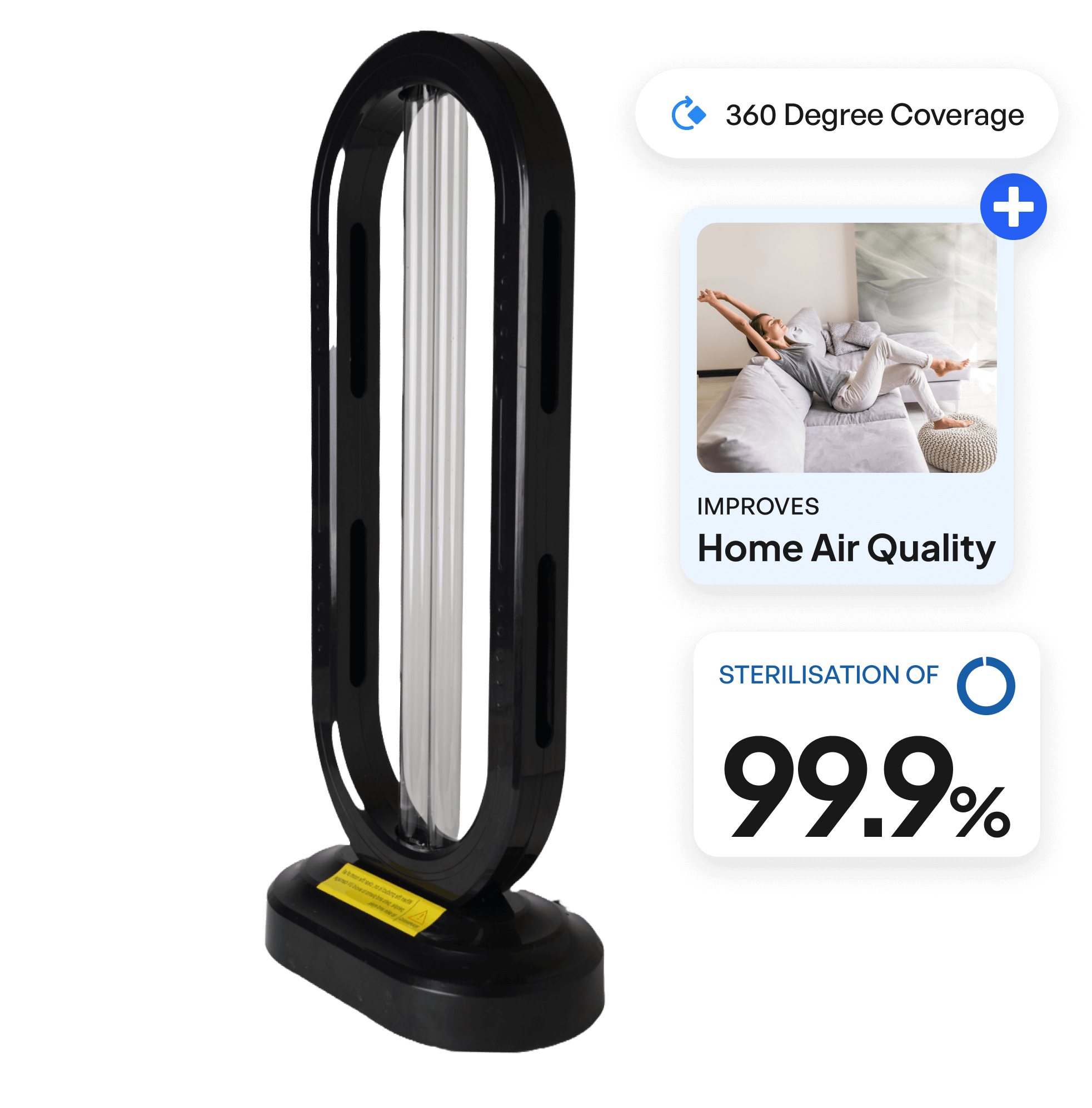 Leveraging medical-grade UV-C light technology, the HaloUV eliminates up to 99.9% of harmful microorganisms, including germs, bacteria, viruses, and allergens, making your living environment safer and healthier.
