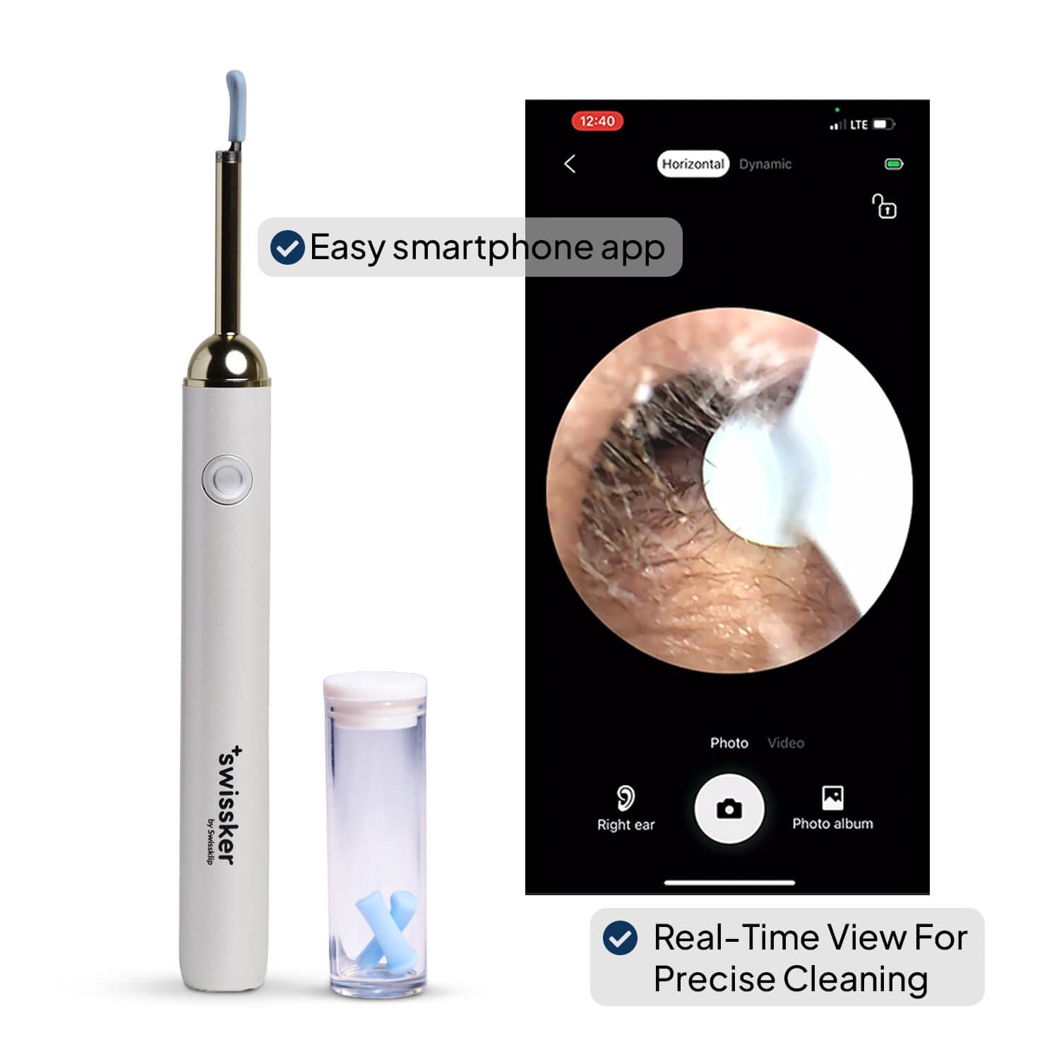 Watch earwax removal happen live on your phone. The 1080p camera and LED lights let you target buildup safely, avoiding risky cotton swabs that can push earwax deeper into your ear canal and cause permanent damage.