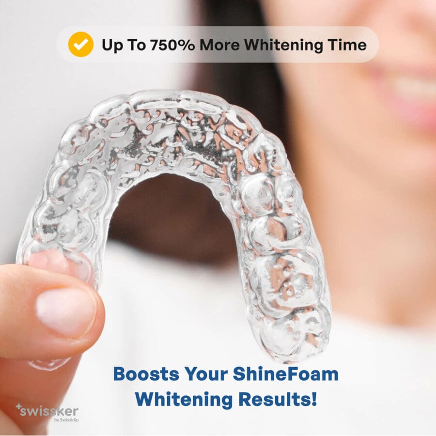 The Swissklip Retainer Tray combines professional-grade thermoforming technology and dentist-trusted materials to mirror the precision of in-office whitening. Its custom-fit design keeps foam securely against your teeth, ensuring even, controlled whitening without the risk of patchiness.