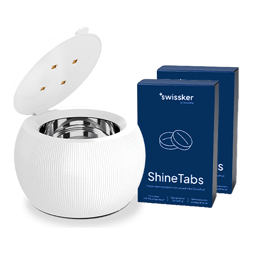 Achieve a dazzling smile up to 750% faster with the dentist-recommended Swissklip Retainer Tray. Features thermoforming technology for a custom fit, even whitening, and a FREE protective case.