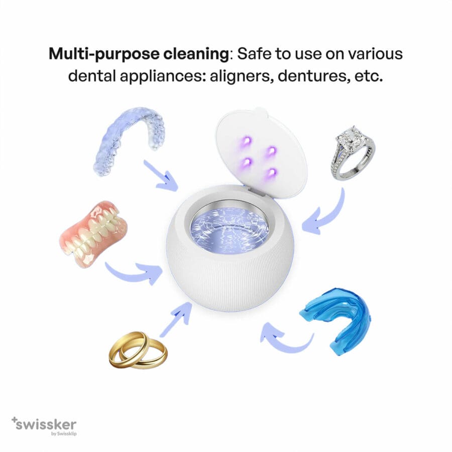 - Multi-Purpose Dental Care Solution: cleans dentures, retainers, mouthguards, and more.
