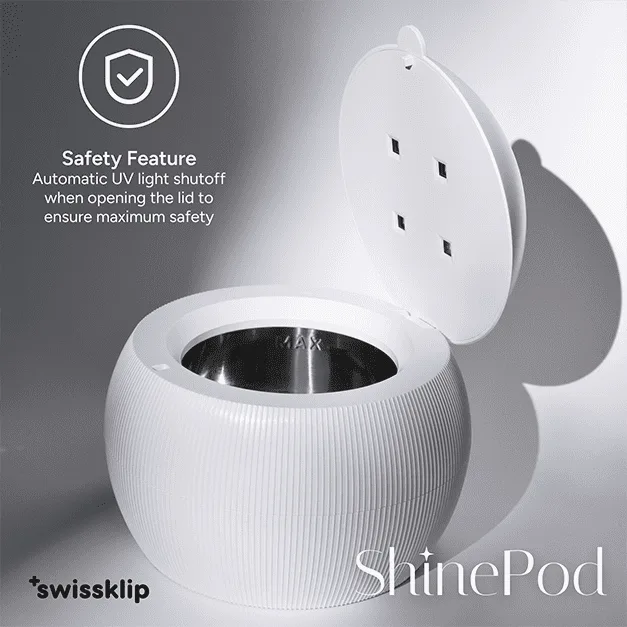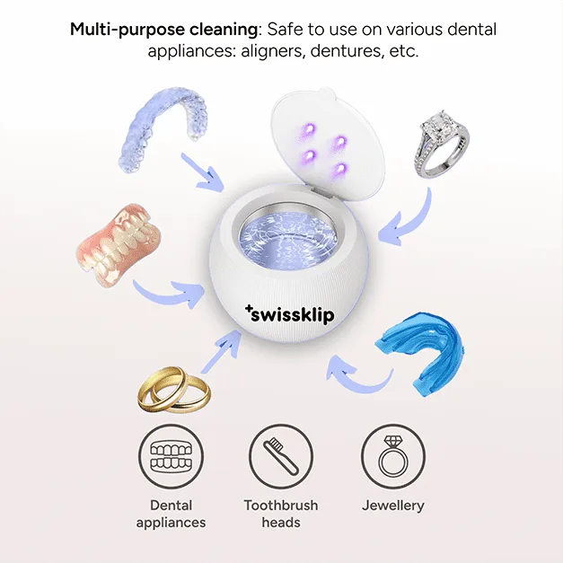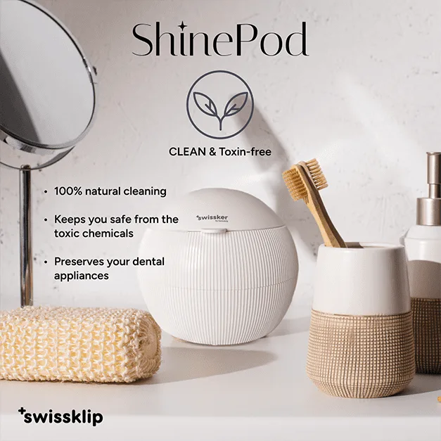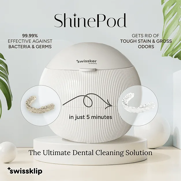 Unlike other cleaners, ShinePod uses advanced ultrasonic technology to reach every nook and cranny, eliminating more plaque and germs. This translates to improved hygiene, fewer dental concerns, and less money spent replacing rather than maintaining your retainer. The ShinePod by Swissklip boasts unmatched cleaning power, ensuring your retainer is spotless & bacteria-free.